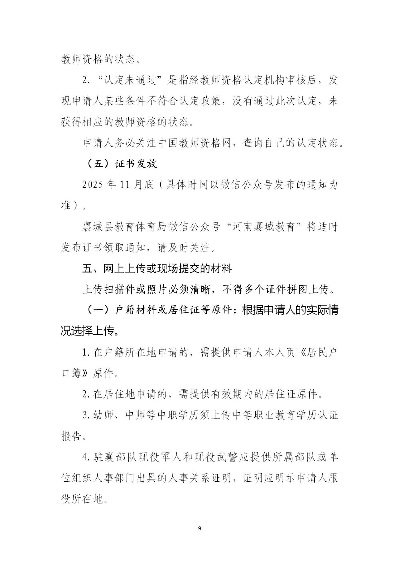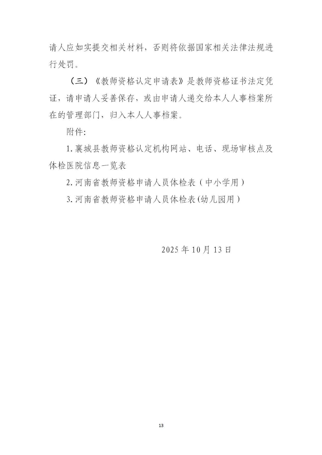 襄城县2025年下半年中小学幼儿园教师资格认定公告