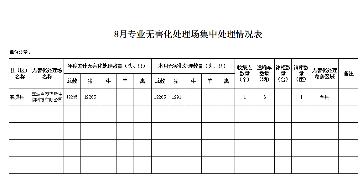 8月专业无害化处理场集中处理情况表