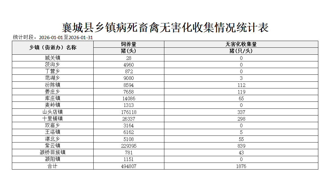 1月专业无害化处理场集中处理情况表