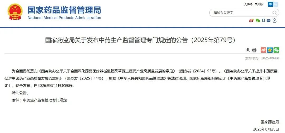 《中药生产监督管理专门规定》