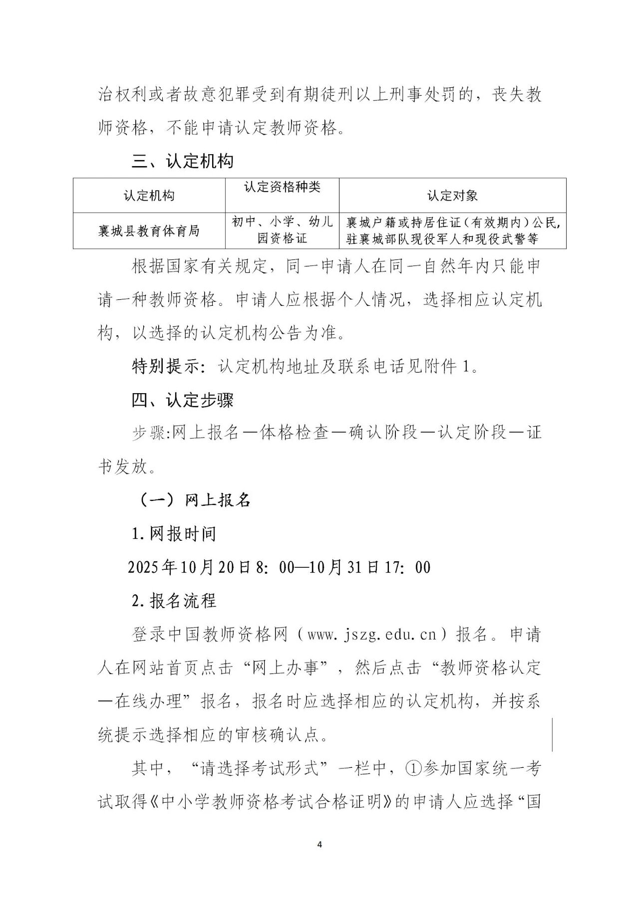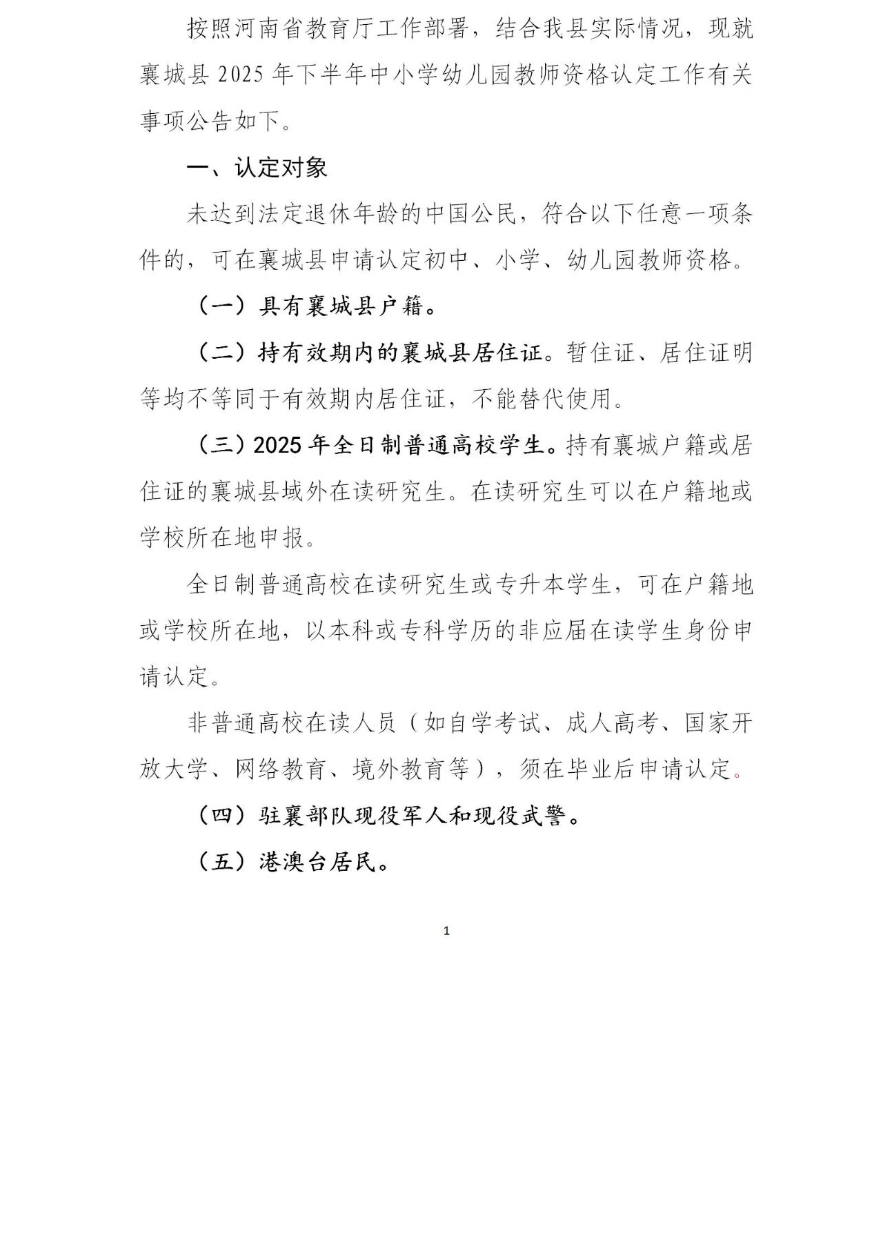 襄城县2025年下半年中小学幼儿园教师资格认定公告