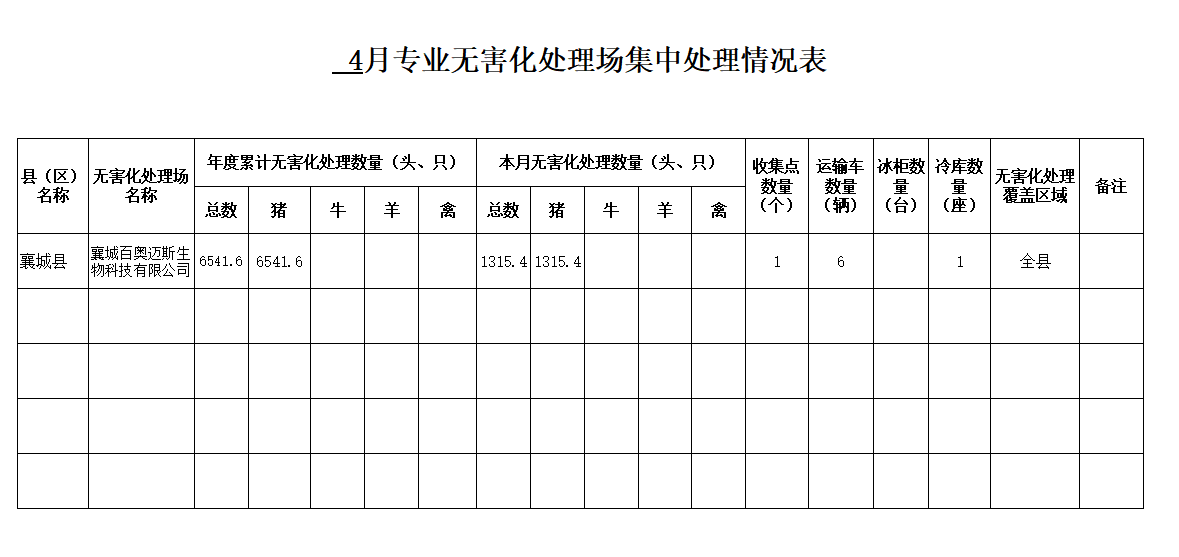 4月专业无害化处理场集中处理情况表