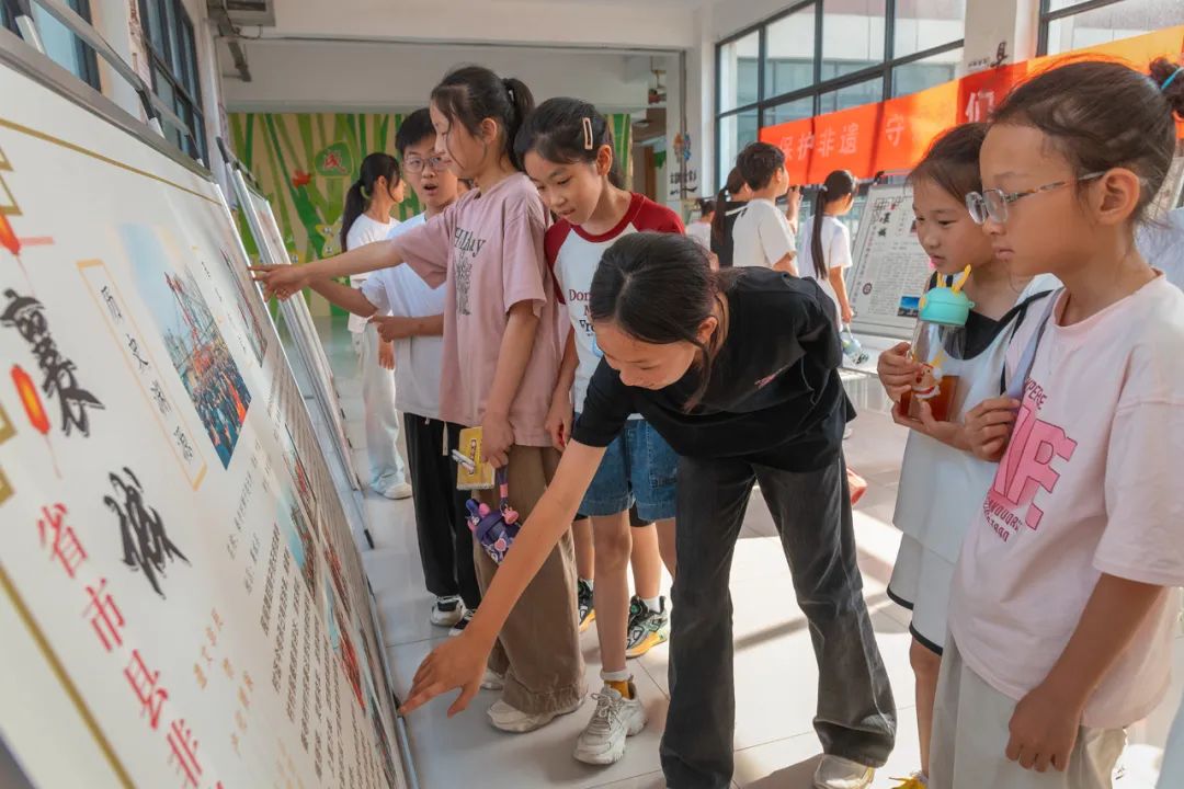 教学楼长廊的非遗展板前,学生们围聚驻足,通过图文介绍了解我县非遗项目的前世今生,在低声交流中感受非遗文化的深厚底蕴。